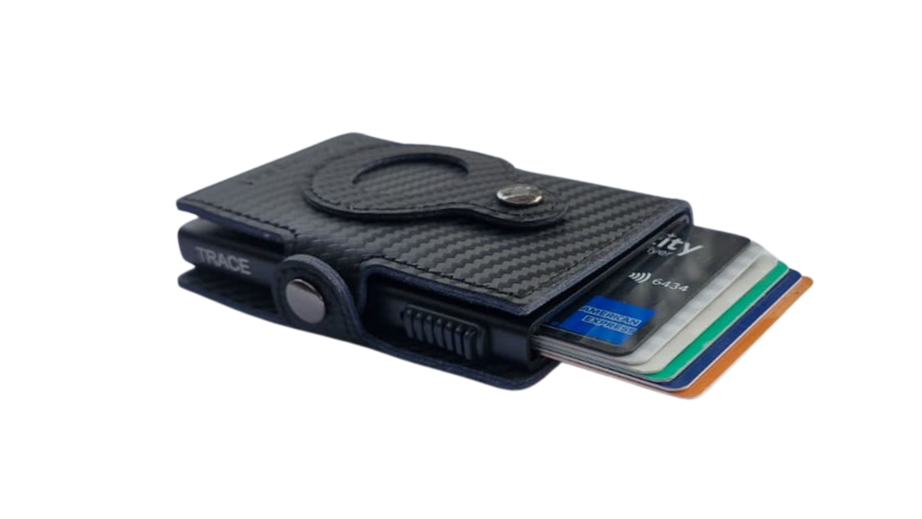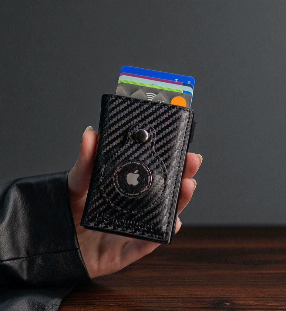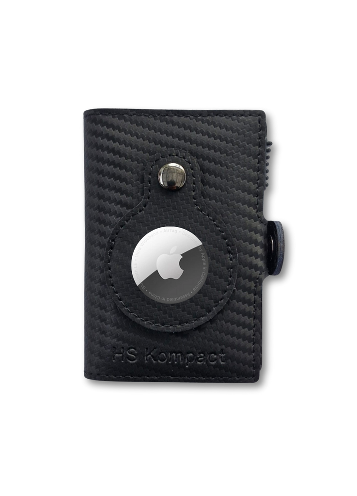 Freshly fitted with an Air Tag compartment (Air Tag not included), this genuine leather twist on the Classic Kompact Carbon wallet is our most stealthy release. Comprised of a reinforced carbon-fibre finish, this valiant wallet will source reckless admiration and eye-catching impressions. Built for the courageous. Enjoyed by those who live on the edge.