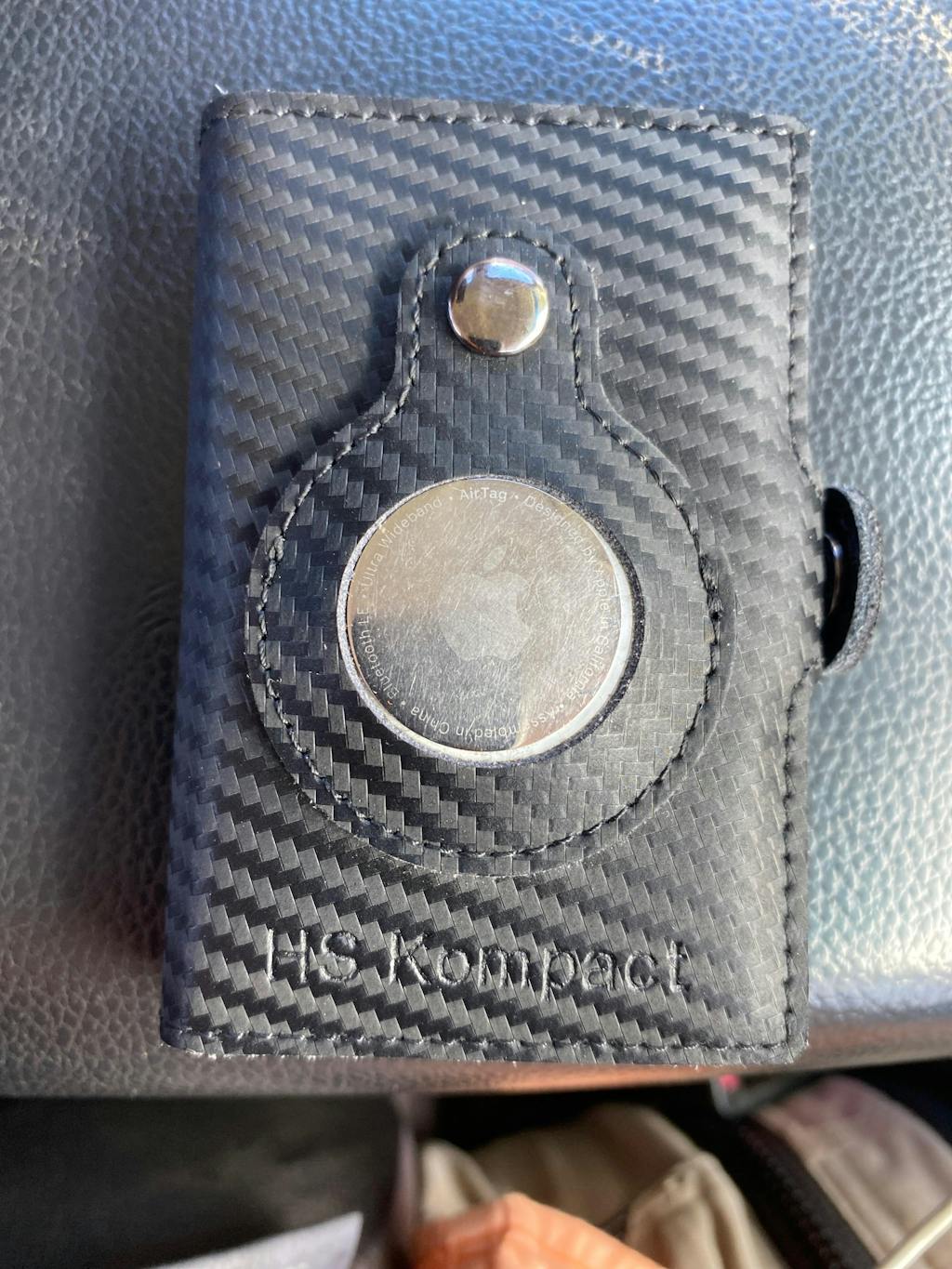 Freshly fitted with an Air Tag compartment (Air Tag not included), this genuine leather twist on the Classic Kompact Carbon wallet is our most stealthy release. Comprised of a reinforced carbon-fibre finish, this valiant wallet will source reckless admiration and eye-catching impressions. Built for the courageous. Enjoyed by those who live on the edge.