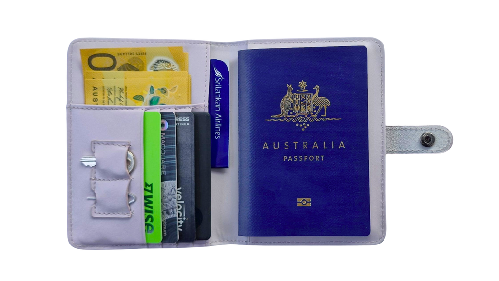 The Wanderer Lavender is oh-so lush and elegant. Featuring a pastel purple casing, it is the perfect organisational accessory for your travel kit: such as passport, currencies, backup travel money cards, and luggage keys. It's made for adventure!